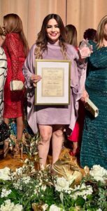 Es reconocida como “Mujer Exitosa de Alto Nivel, VII Edición”, por su brillante carrera, extraordinario prestigio y ejemplo inspirador que motiva positivamente a su entorno.